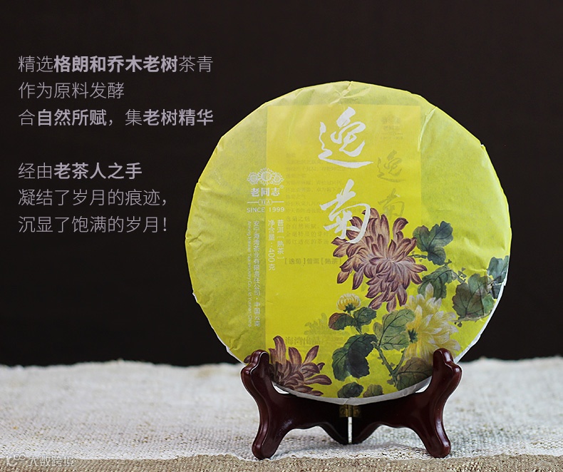 选用勐海县格朗和茶区乔木老树,遵循传统精制工艺杀青、揉捻、晒干,经普洱茶终身成就大师邹炳良先生精心发酵,调配而成。