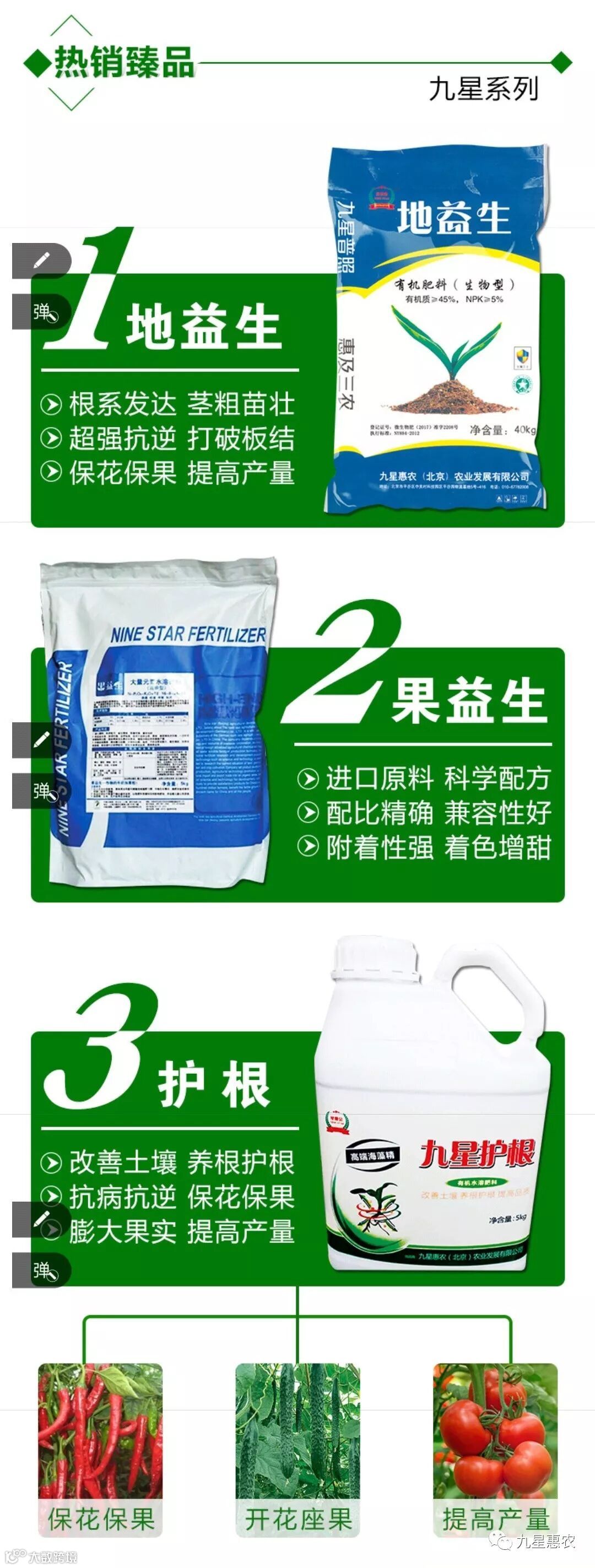 九星惠农(北京)农业发展有限公司,是一家致力于研究植物营养以及作物栽培技术的高新技术企业,公司集产品研发、生产、农业新技术推广、进口贸易为一体,依靠科技求发展,不断为客户提供满意的产品。
