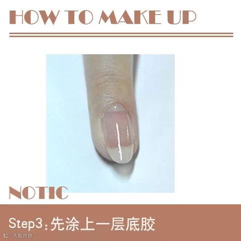 Step4:接下来刷涂白色甲油胶,要注意将甲油胶刷涂两遍,使颜色均匀,饱和度更高。