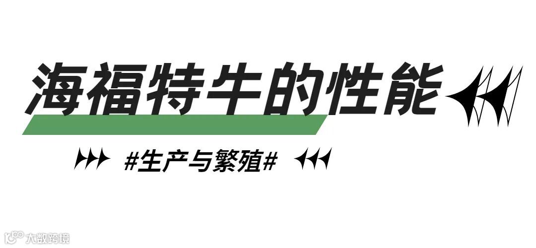繁殖性能:海福特牛繁殖力强,小母牛6月龄开始发情,育成母牛16~18月龄、体重350Kg开始配种,发情周期在21(18~23)天,发情持续期12~36h,妊娠期平均277(260~290)天,公牛体重虽大,但爬跨亦较为灵活,种用性能颇好。