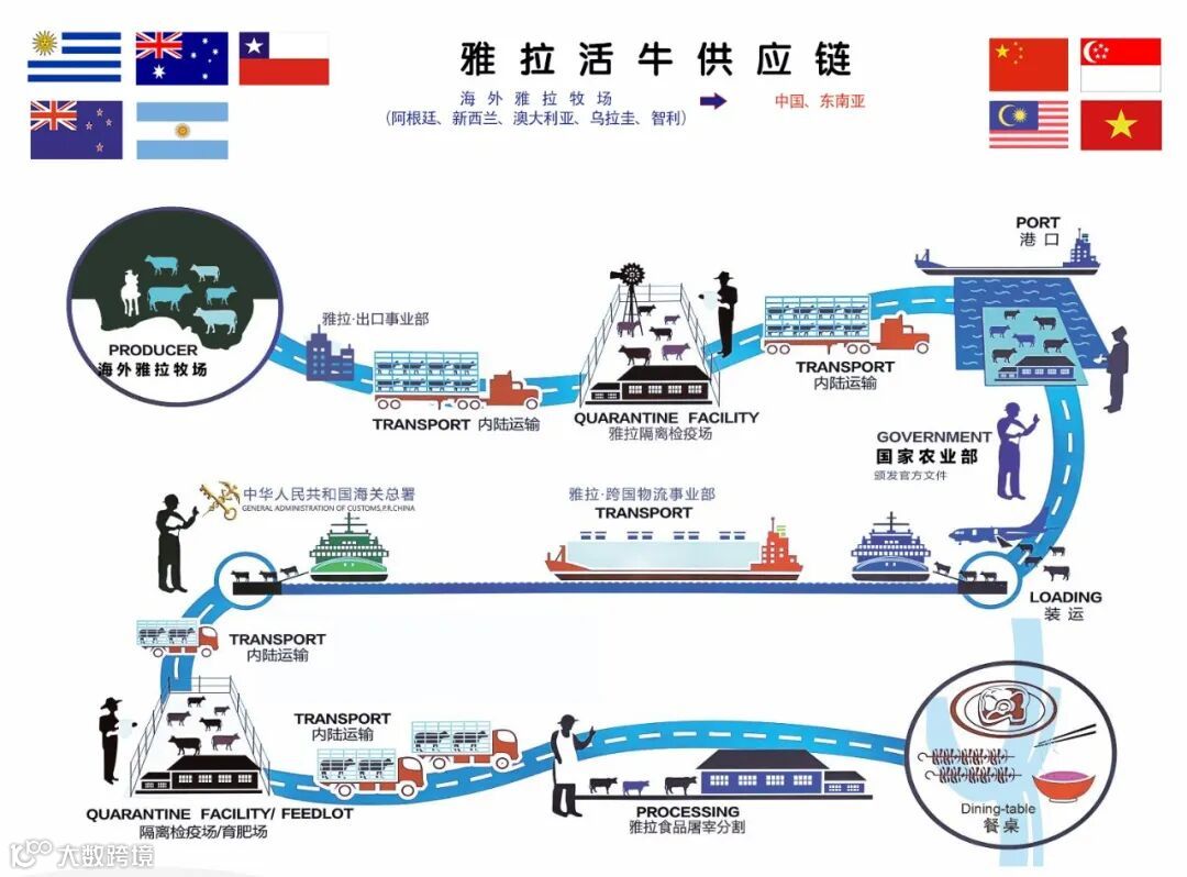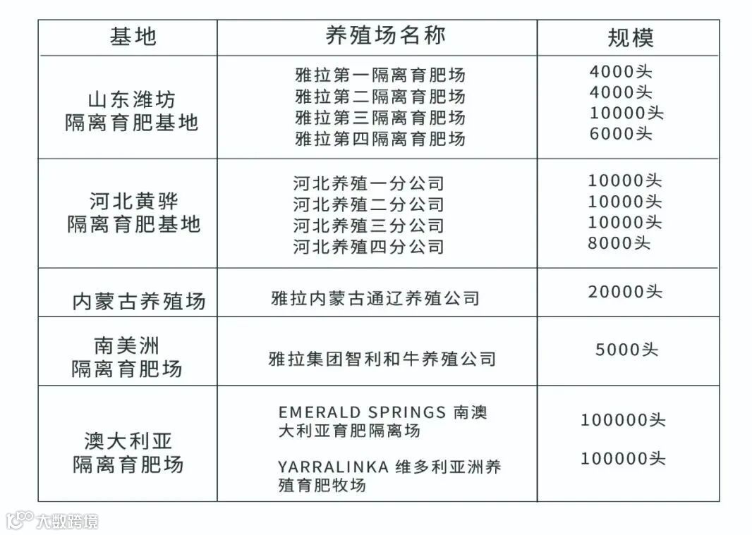 新加坡YARRA集团斥巨资整合肉牛产业链,已在牛源大国澳洲、新西兰、乌拉圭、和智利等地投资布局。建立种牛和肉牛采购、隔离、育肥及进出口,鲜冻品牛肉的进出口贸易等关键环节的设置、资质及团队建设。