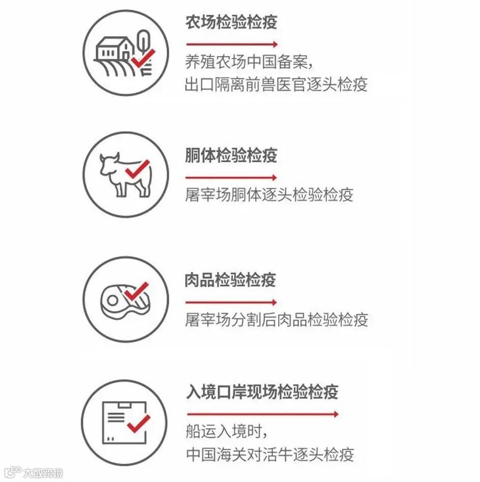 从牧场到餐桌需经历国外国内多道检验检疫,确保消费者吃到的每一块牛肉都是新鲜安全的。