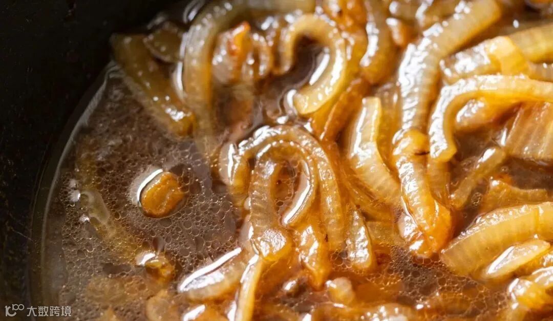 平底锅下一勺油烧开,洋葱炒至金黄,再倒之前调好的酱汁,煮上5分钟直到酱汁里的糖完全融化。盛出后滤掉洋葱,酱汁就做好啦~