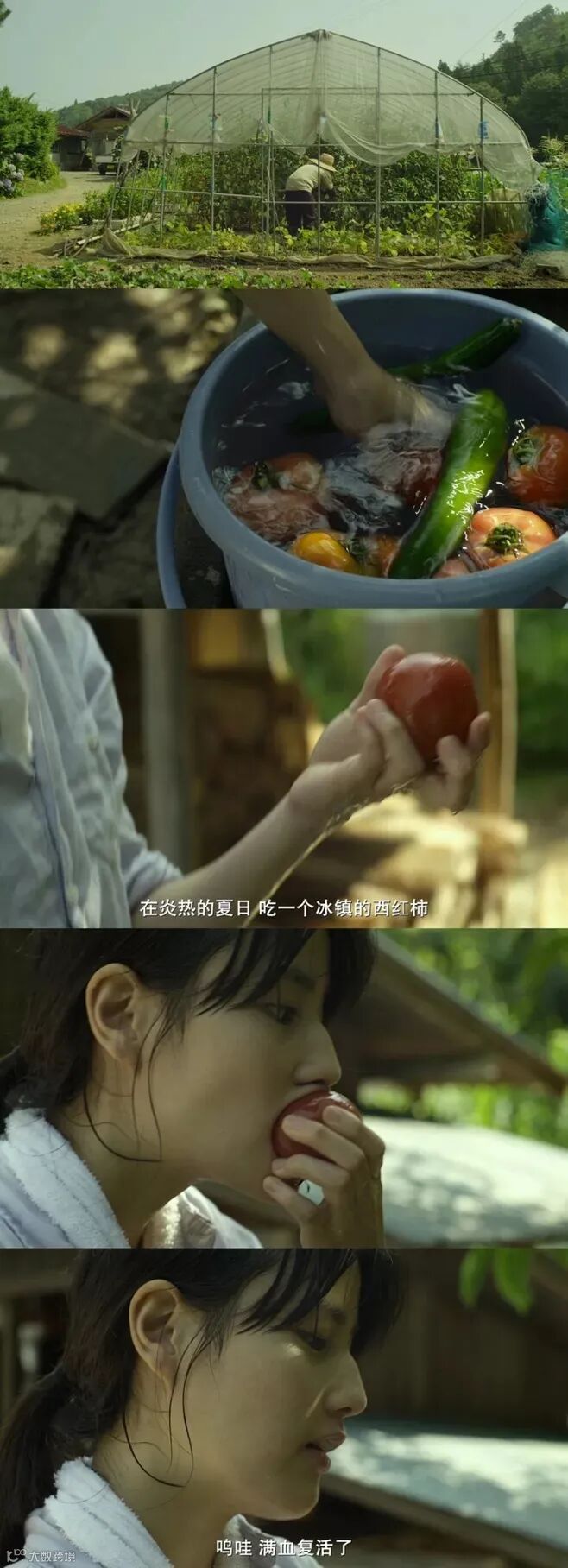 明明热浪就要扑来,结果下个镜头转到一片浓荫,市子拿起冰镇的蔬果,嗷呜一大口,屏幕外竟莫名跟着感到一丝清凉感。