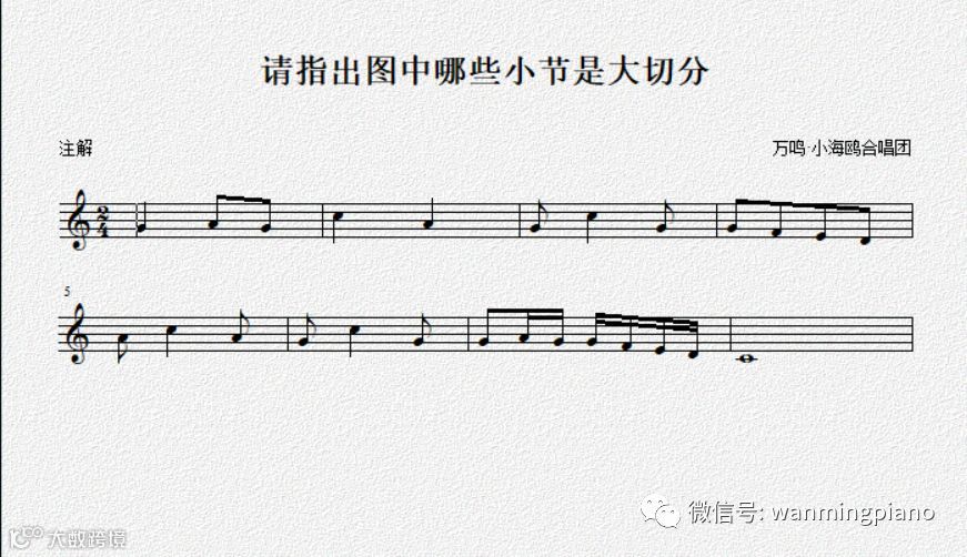 作业:请指出图中一共8小节旋律,哪些小节是大切分节奏!