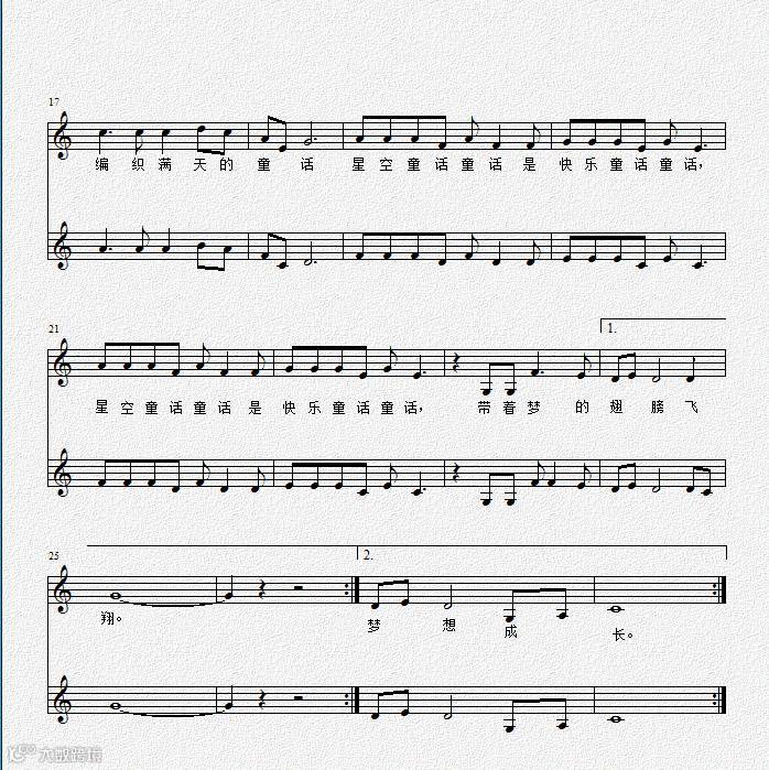 三、新作品《星空童话》新学习29-40小节,唱熟练全曲歌词和旋律