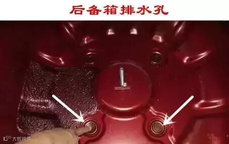 后备箱排水孔位于备胎坑里面。一般情况下后备箱不会轻易进水,当遇到车辆被浸泡等极端情况下,需要尽快排出后备箱积水时往往需要手动打开后备箱排水口,根据车辆不同,后备箱排水口通常设计为1-2个。