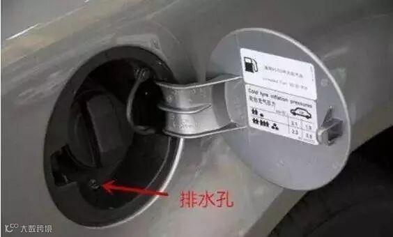 一般汽车的油箱口开口都是向上的,这样在油箱口的下部就容易积水。为了排水,就在底端装了一个“地漏”。