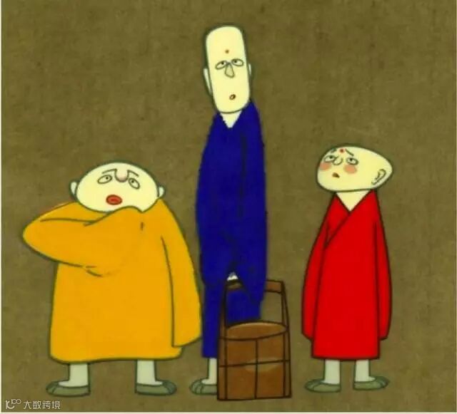 “一个和尚挑水吃, 两个和尚抬水吃, 三个和尚没没呀没水吃”就这么简单的剧情,这不是我妈每天在我耳边讲的东西吗~觉得这张图的画风颇具
