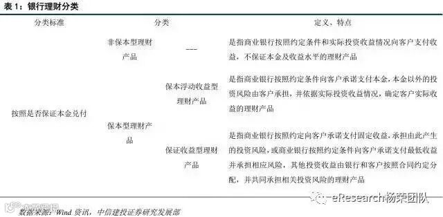 商业理财已经发展了十多个年头,发展极为快速,近五年年复合增长率超过40%。截止2016年六月底,银行理财余额已经达到26.28万亿元。按照最新征求意见稿,商业银行理财产品有多种分类,分别按照是否保证本金兑付、是否估值和存续期是否开放等标准。这里我们重点考察是否保证本金兑换的分类标准。按照知否保证本金兑换,商业银行理财产品可以分为非保本型理财产品以及保本型理财产品,保本型理财产品又可以细分为保本浮动收益型理财产品,保证收益型理财产品两类。其中保本型理财产品属于表内理财,一般作为结构性存款,非保本型理财算作表外理财,也就成为了银行将信贷资产出表的一大利器。