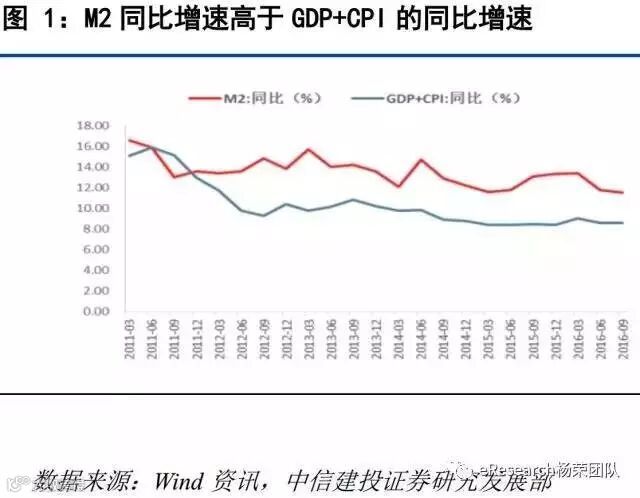 从2016年前三季度GDP初步核算结果来看,金融业的增加值要占GDP总量的8.8%,而美国不足7%,日本只有5%。M2同比增速远高于GDP+CPI同比增速,2016年第三季度数据显示,M2增速为11.5%,而GDP+CPI只有8.6%,相差2.9%,这样看来我国确实存在资金空转,脱实向虚的情况。