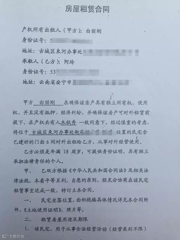 阿玲回忆,经朋友介绍,她看了束河古镇中心街尾村白丽刚的房子,第二天决定承租,第三天就签了合同。合同租期20年,每年租金5万元,3年一付。