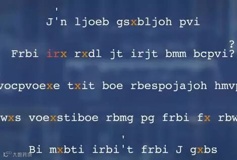 这串字在你看来毫无意义,而且它本该如此,因为这是一段加密密码,是信息加密后的结果。但如果我告诉你我所做的,只是把句子里面的每一个字母按照字母表顺序向后移动了一位的话,你就会知道这串字可以翻译成这样。