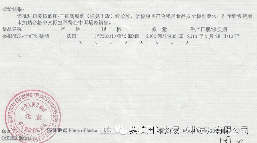二、如果在国外他的量比较大,一次达到几万瓶。它就是在法国可以连中文标识一块给贴好,就是中英文对照的,由此也可以看到进口商的实力(如图)