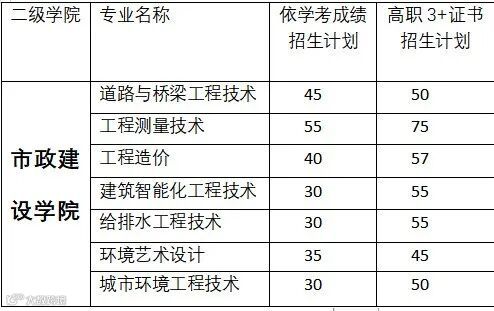 市政建设学院2023年春季高考招生专业为道路与桥梁工程技术、工程测量技术、工程造价、给排水工程技术、城市环境工程技术、建筑智能化工程技术、环境艺术设计等7个专业。其中道桥、测量、造价、给排水四大专业组建的道路与桥梁工程技术专业群为广东省高水平专业群。造价、给排水、道桥、环境艺术等专业为广州市示范专业。