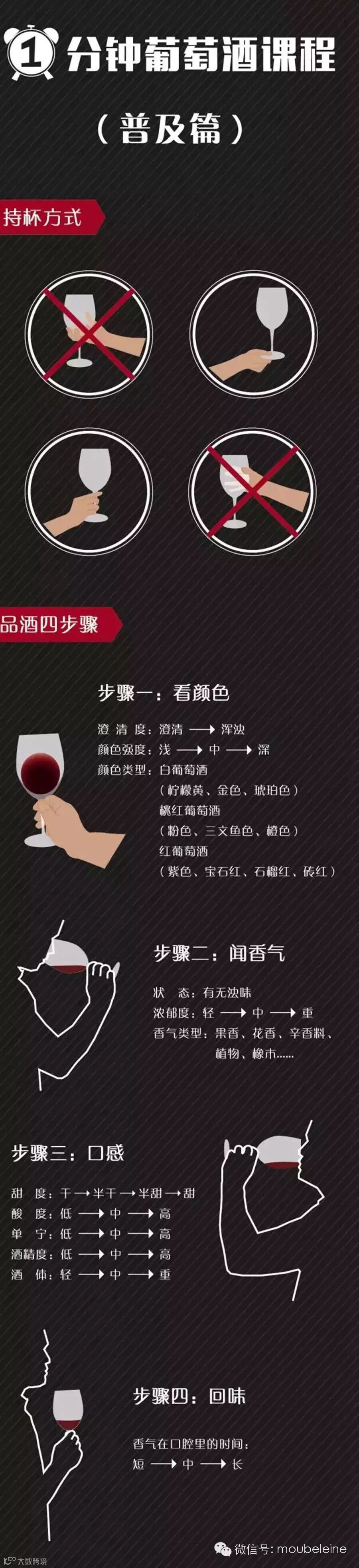 导读:葡萄酒喝了不少,怎么拿酒杯?品酒有几个步骤?不知道?这不是OUT了吗?快跟红酒课堂来学习今天的《一分钟葡萄酒课程》吧!
