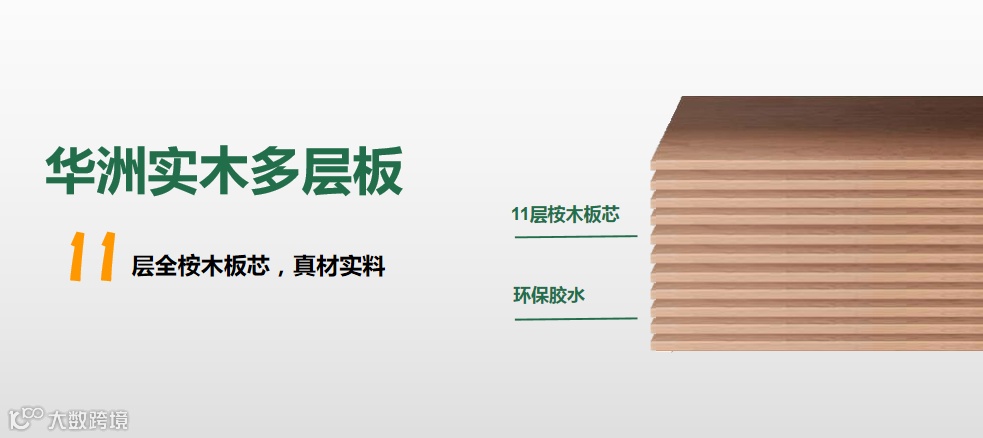 实木多层板的强度跟它的基层有关,每增加一层,其强度都会相应的增强,华洲实木多层板11层的单板结构,厚度足达18mm(市场板通常为17mm),真材实料。