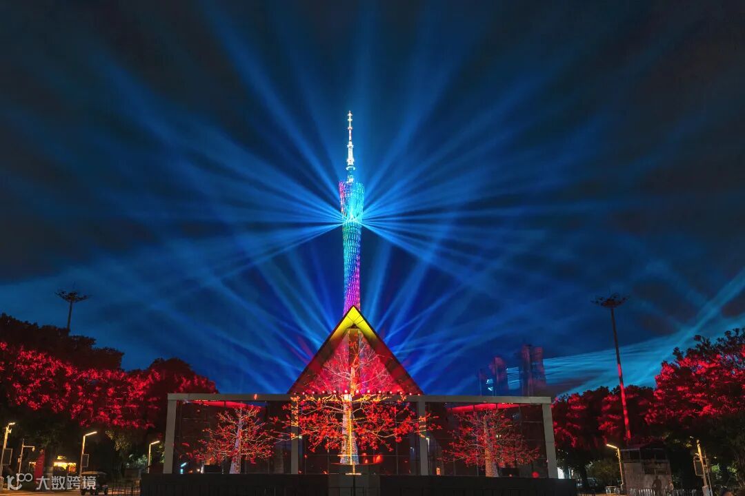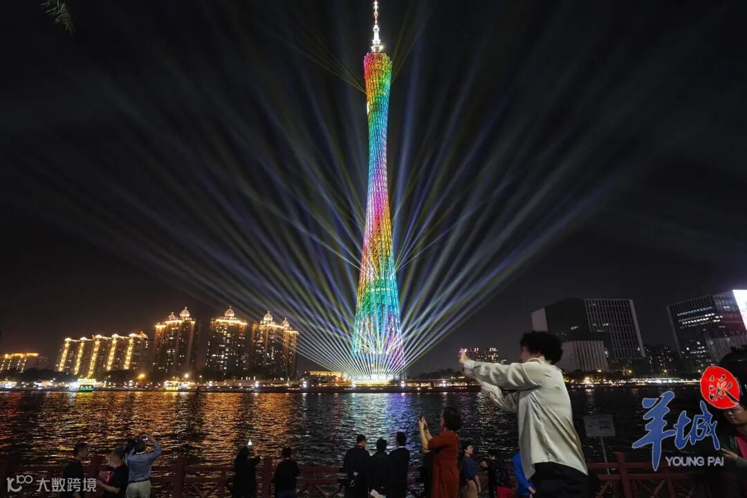 到七彩华服披身的广州塔