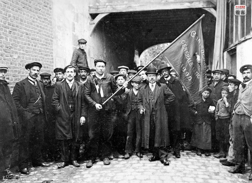 【图为1909年,法国瓦兹省的纽扣工人参加劳动节集会游行】