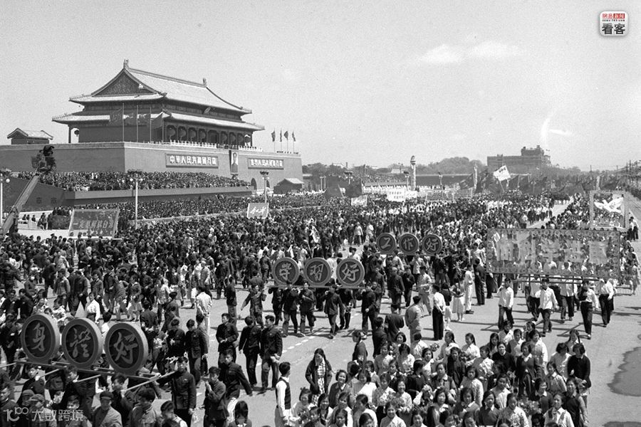 【图为1956年5月1日,北京举行群众游行,庆祝五一国际劳动节。新华社发】