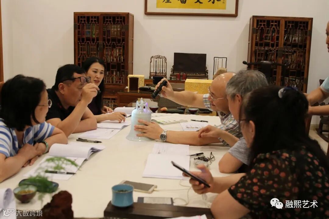 “五色祥云—单色釉瓷器特展”鉴定专家在自得堂合影左起:段小红、阮华端、潘鸣皋、任志录、冯小琦、冯玮瑜