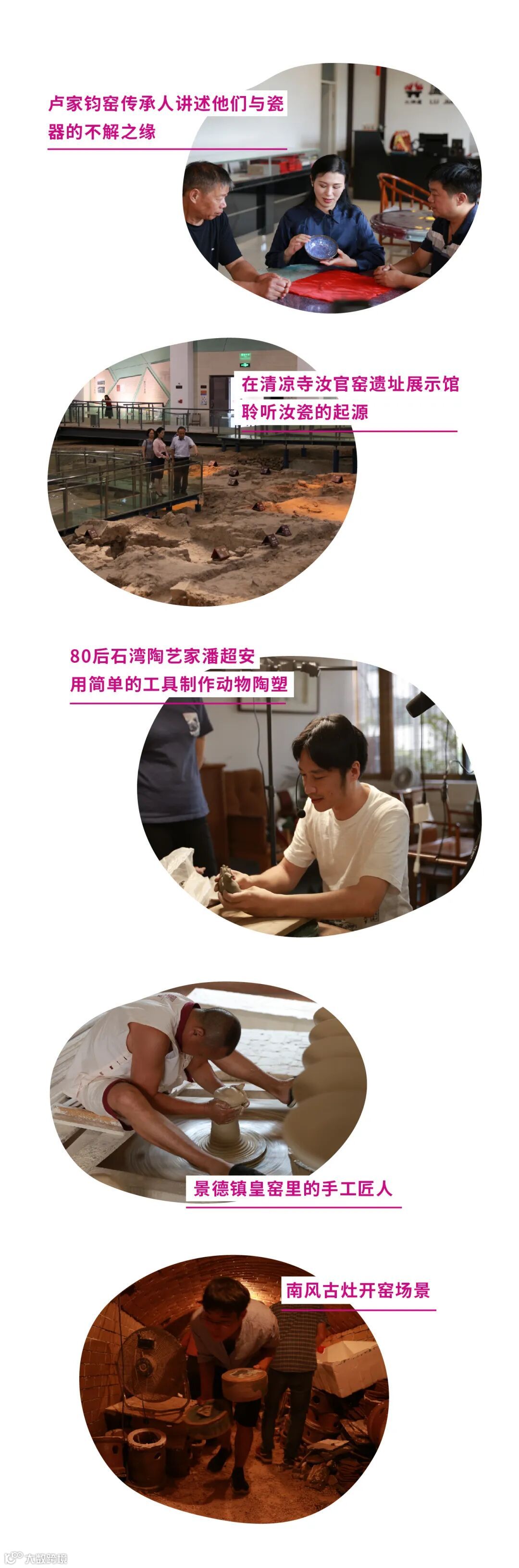 我们将游历中国名瓷的诞生地,探索千年的汝窑遗址,活着千年古镇“神垕”,中华民族的发祥地之一禹州,皇家瓷器的来源地—景德镇,古代四大名镇之一佛山……到不同的地方,见不一样的人,听不同的陶瓷故事。