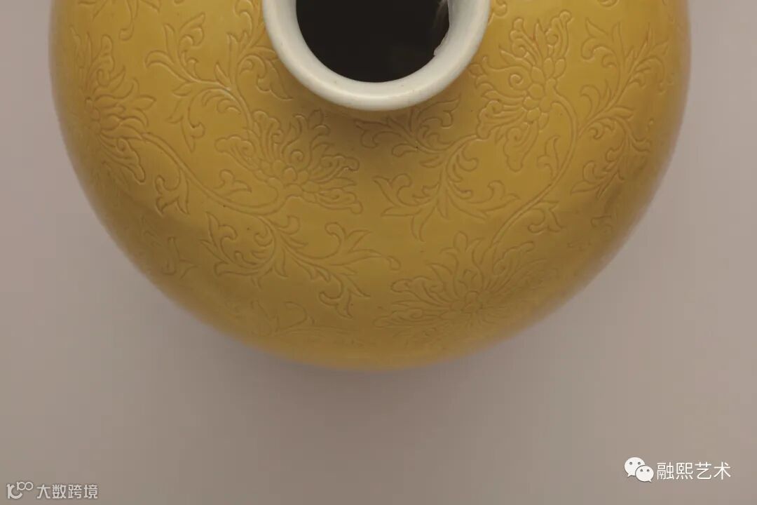 清康熙黄釉刻缠枝莲纹梅瓶局部