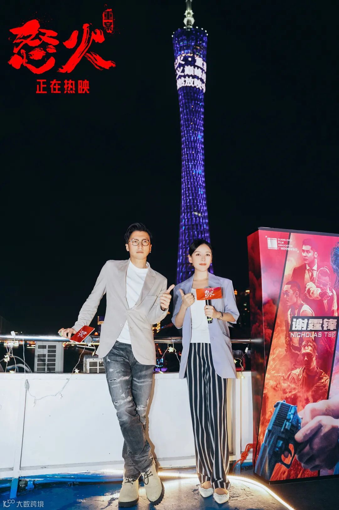 8月3日晚,演员谢霆锋、何佩瑜亮相广州《怒火·重案》媒体见面会。当晚,两位主创踏上“水上花城”珠江夜游船,一边欣赏广州的美景,一边向记者推介这部最新的动作电影。