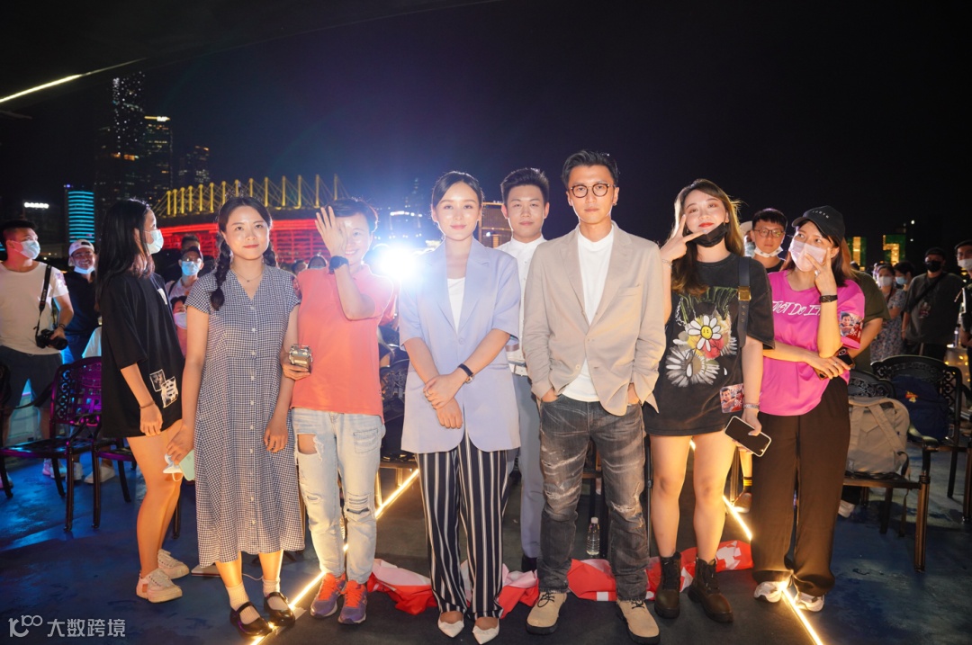 随后两位主演在广州塔下与现场的观众留下了合影,还有很多热情的粉丝在游船经过的桥梁上和霆锋打招呼,霆锋的人气真的很高哦