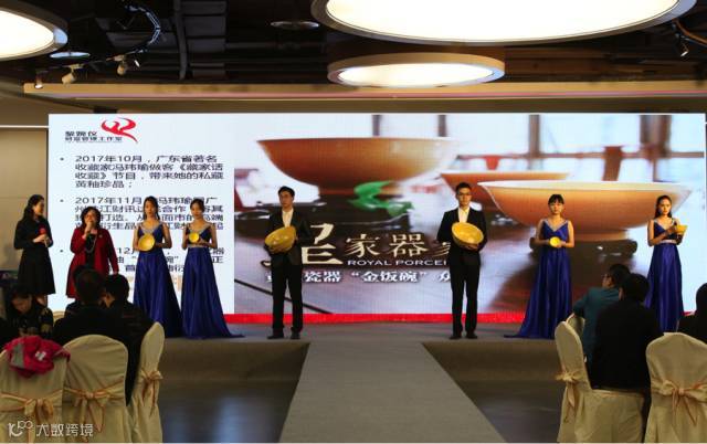 在位于琶洲的“融媒合力,赢在珠江”珠江经济台2018合作资源说明会上,玮瑜文化推出的第一批黄釉衍生品瓷器“金饭碗”首次正式震撼亮相!广东广播电视台副台长曾少华、广东广播电台珠江经济台台长、广州珠江财讯传媒董事长陆敏华等领导出席了活动。