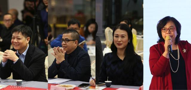 △从左到右:广东广播电视台副台长曾少华、广州珠江财讯传媒董事长陆敏华、广州玮瑜文化发展有限公司董事长冯玮瑜,著名财经主持人、珠江财讯总经理黎婉仪