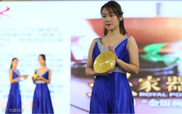 现场,众多模特现场展示了由玮瑜文化出品的首批黄釉衍生品“金饭碗”——中国最大的黄釉收藏家冯玮瑜从她的藏品中,特别选出几件顶级的藏品:柠檬黄釉金饭碗、素面娇黄釉聚福大碗、暗刻龙纹娇黄釉聚福大碗,并在景德镇聚齐许多资深的老窑工师傅,经过一年多的精益求精地研发,按照当年明清“御窑”的顶级标准,研发出本次众筹首发的第一批衍生品,再现了当年中国瓷器的顶峰,皇家使用的“御窑”出品!