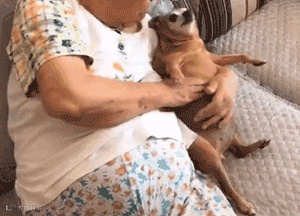 当妈妈喂狗时