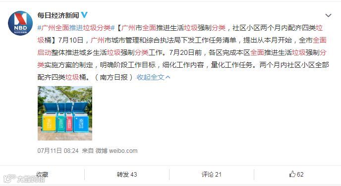 根据《加快推进生活垃圾分类工作任务清单》,广州将在7月16日前公布分类运输车辆收运路线和投诉举报电话,方便市民参与垃圾分类监督。