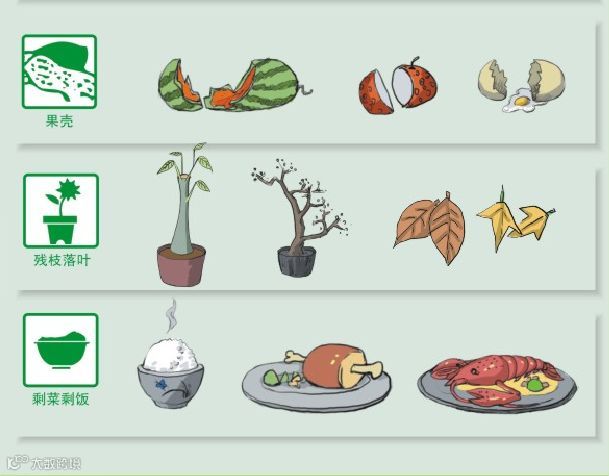 像大棒骨、贝壳、榴莲壳这样的垃圾