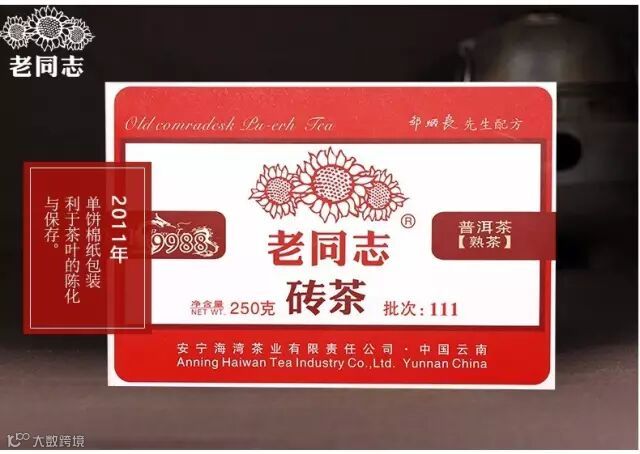 导读:老同志9988普洱茶砖。是选用云南优质大叶种为原料,秉承50余年普洱茶制评大师—— 邹炳良先生配方,及传统制