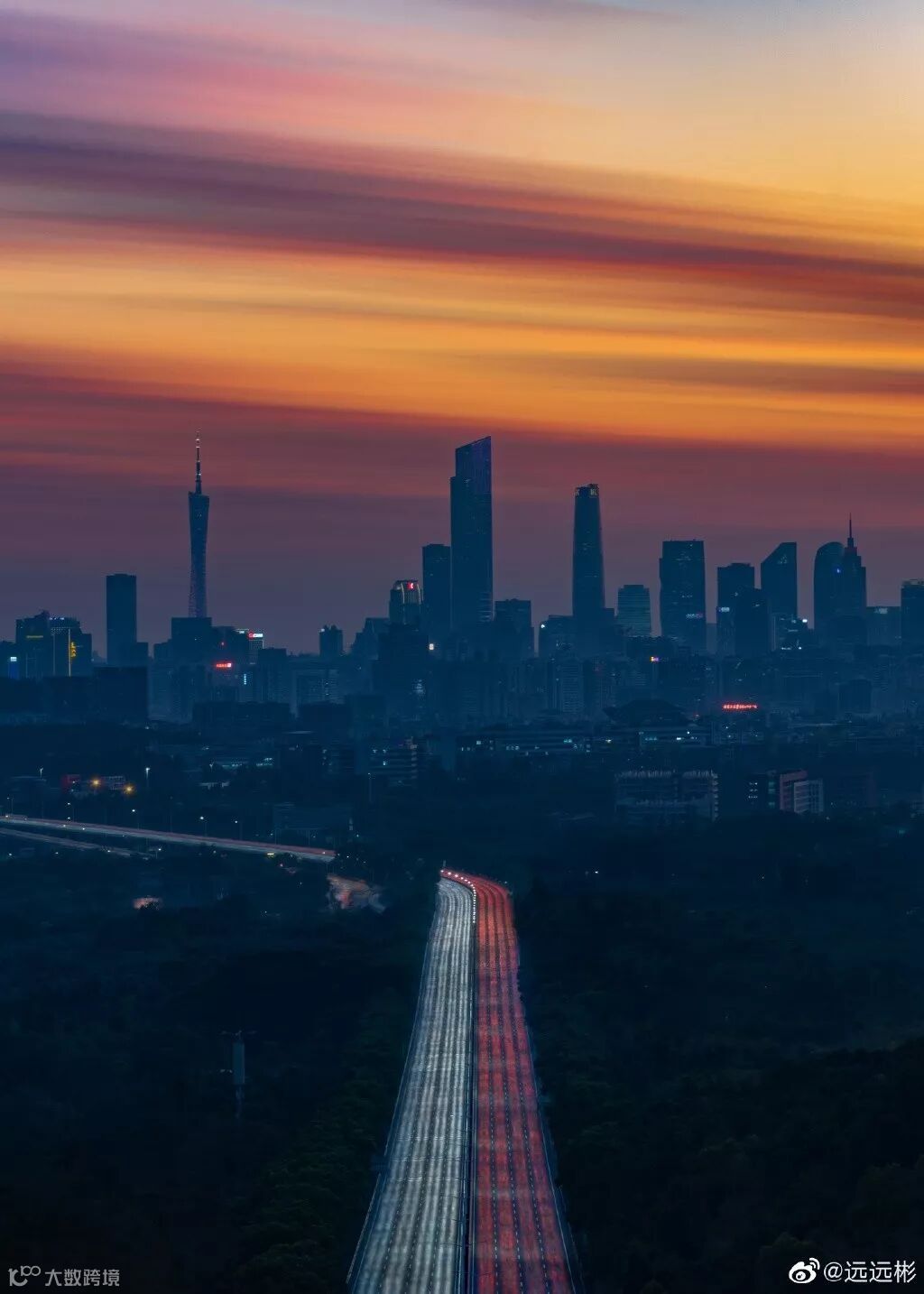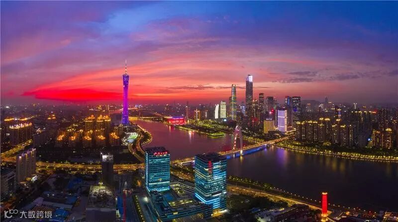 珠江两岸及多座跨江桥梁同时亮起闪耀灯光
