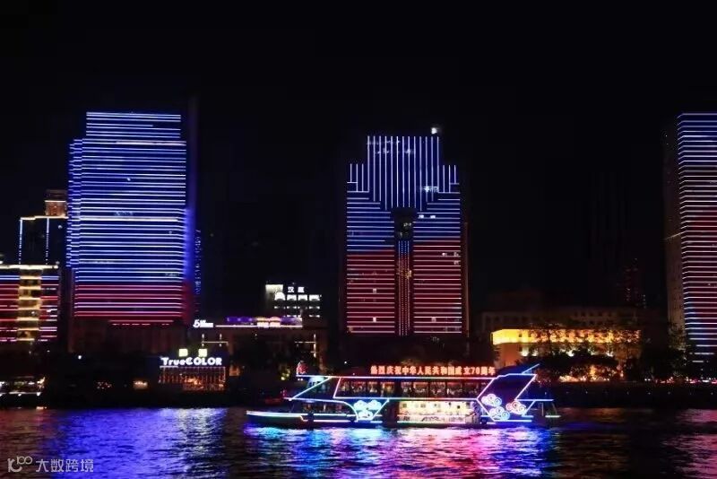 天字码头及旗下游船纷纷飘起鲜艳的五星红旗,并装上夺目的霓虹彩灯“热烈庆祝中华人民共和国成立70周年”