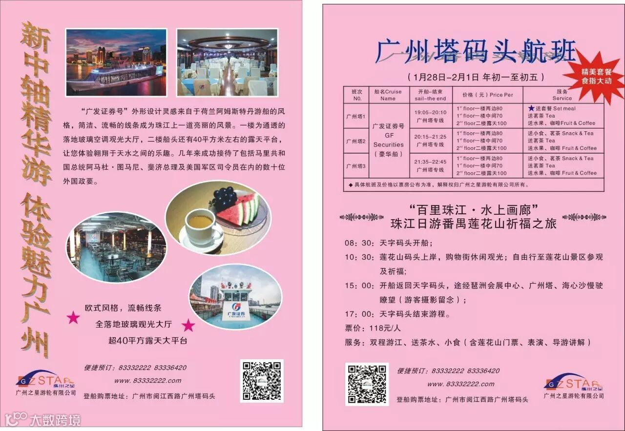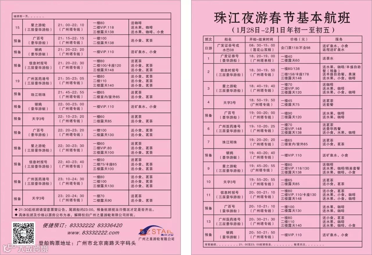 春节期间,天字、广州塔、海心沙、大元帅府4大码头航班45元/人起