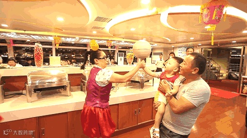 甲板还有摄影师帮忙拍摄免费的小照片,这时广播响起,回到二楼的时候已经聚满了人,原来表演开始了,第一次在移动的游船上看表演,还有互动,又是惊喜满满~