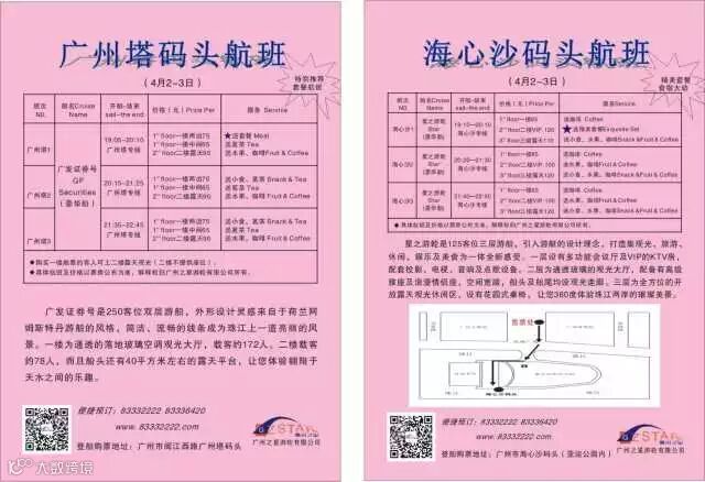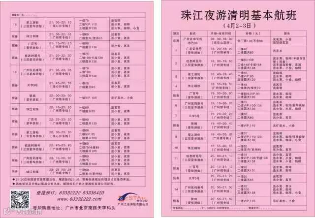 清明期间18:20起约10分钟一班船,广州塔专线游低至48元/人。