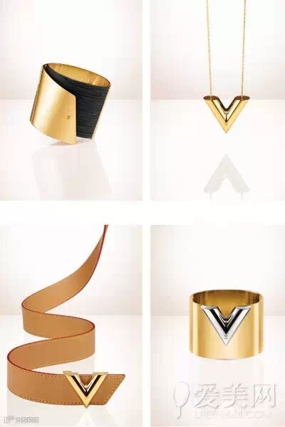 黑色MY EPI手镯、金色ESSENTIAL V吊坠、ESSENTIAL V腰带、ESSENTIAL V手镯