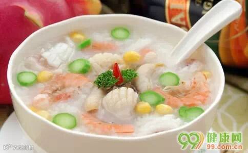 粥中的淀粉能充分地与水分结合,既提供热能,又不乏大量水分,而且味道鲜美、润喉易食,营养丰富又易于消化,因此是健康夜宵首选。鱼片粥、猪肝粥、牛肉粥通常是大家食粥的首选。其实,吃点八宝粥也是不错的选择,八宝粥的主要原料为谷类,常用的有粳米、糯米和薏米,在粥中加入红枣、豆类、核桃等精心熬制,这些原材料基本上都具有补中益气、滋补身体的好作用,常吃可以养神清热,润肺和喘,对于调养肠胃,缓解工作压力都很有好处。