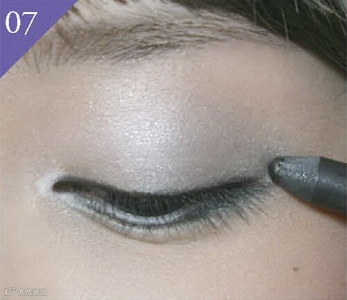 7. 用眼线笔画基本眼线。