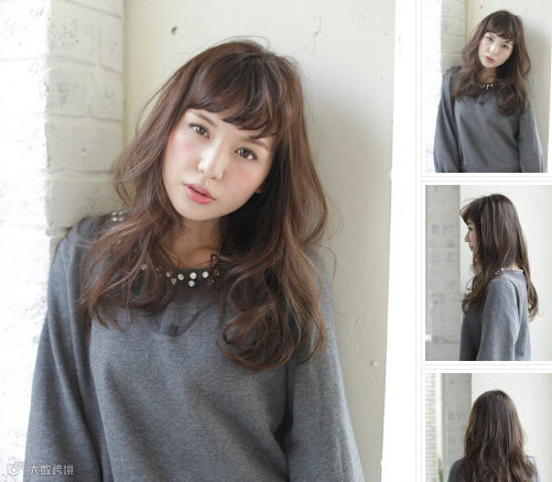 发型点评:这款长卷发推荐给宽脸MM们,侧分刘海沿着眼角垂落,烫卷的弧度自然的遮盖脸蛋,达到完美的修颜效果。