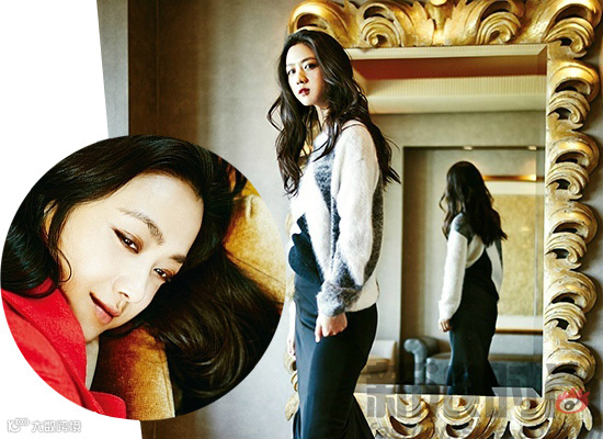不仔细看真像韩国某女子组合成员,幸好“汤女神”的气质非凡,不然很容易就失去了辨识度。韩国杂质拍大片时非常热爱用浓郁的棕色调来凸显气场、渲染氛围。