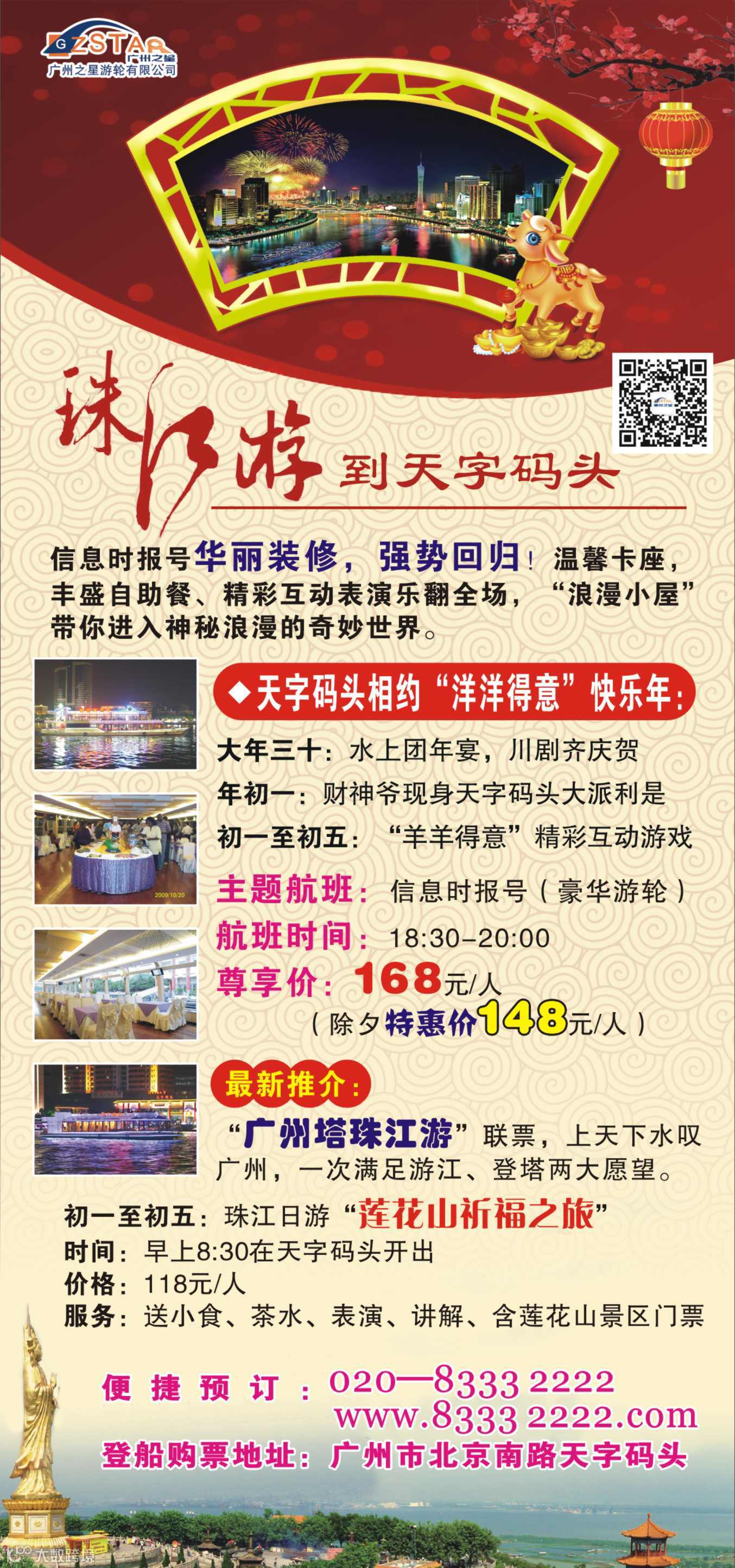 初一到初五,“羊羊得意”精彩互动游戏陪你过大年!更加推“珠江日游莲花山祈福之旅”,推广价118元/人,是春节登高祈福最佳选择!
