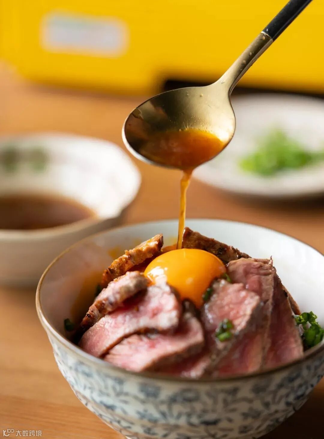 吃之前切记先戳破蛋黄!用力搅和搅和翻拌,让每一片厚厚厚肉片和白胖米粒儿都裹上蛋液。牛肉在蛋黄的拥抱下变得更柔嫩了,舀起一勺连饭带肉一口闷……简直不要太过瘾!
