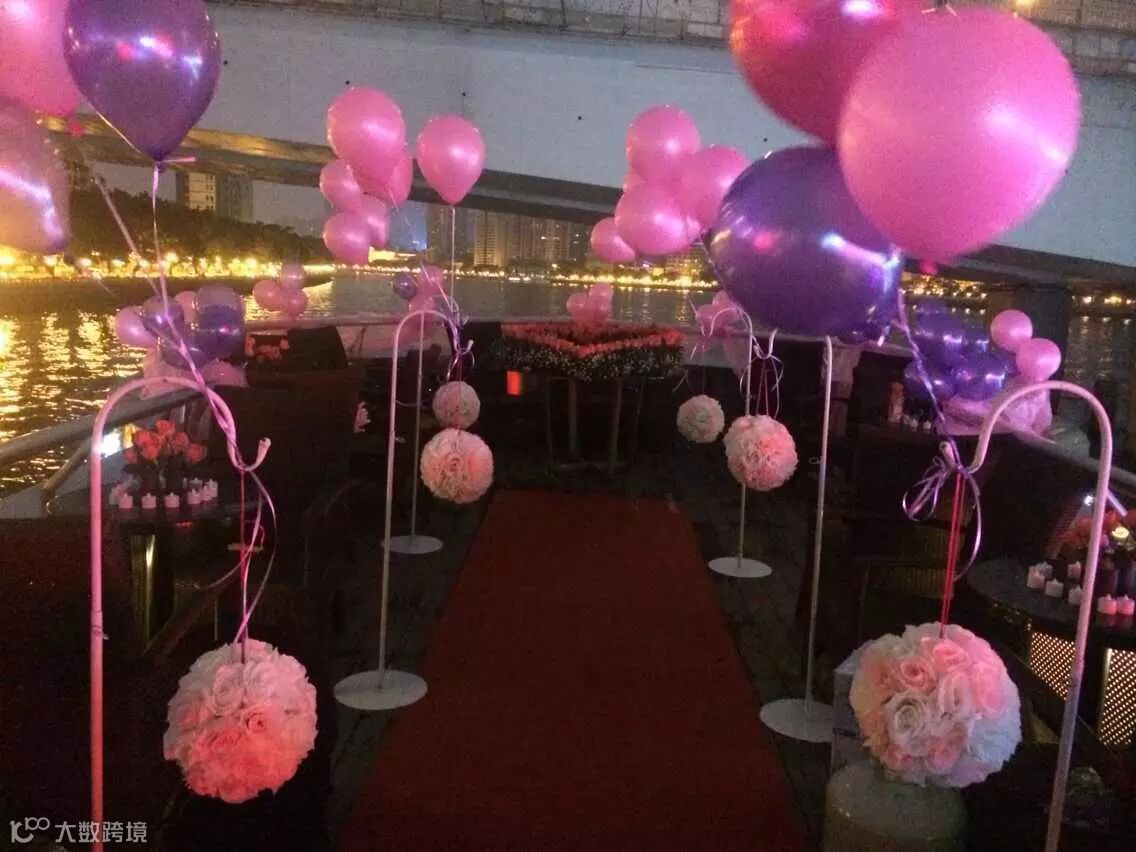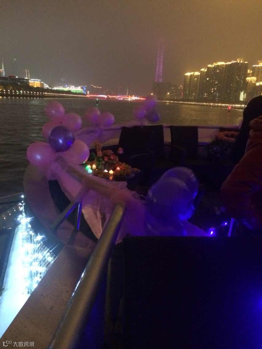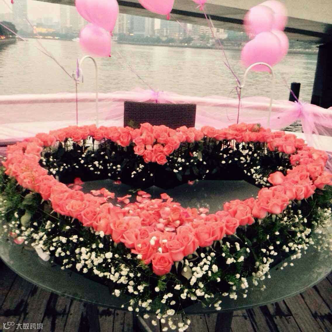 两千朵玫瑰花,几百盏灯!!游船游行在珠江上,欣赏着美丽的江景,唱着情歌,真是浪漫至极啊~~求婚成功率都大大增加了!
