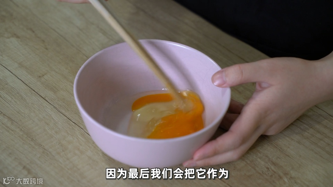 1. 打一颗可生食鸡蛋在碗里,当蘸料。注意,鸡蛋不要打的太散,随便搅一搅就行,不然容易有腥味。